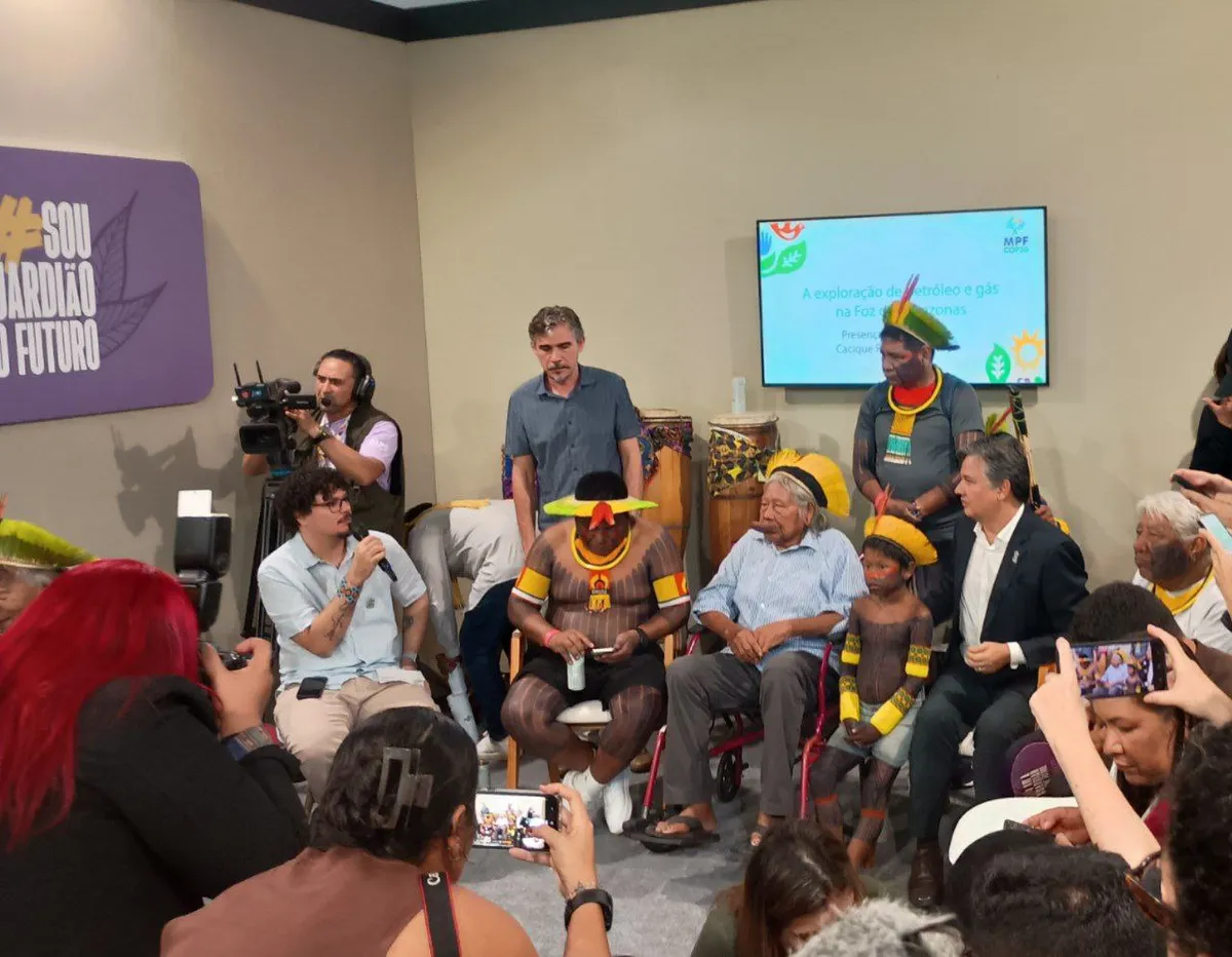 Cacique Raoni Metuktire em painel sobre a exploração de petróleo na Foz do Amazonas - Foto: Micael Olegário/#Colabora