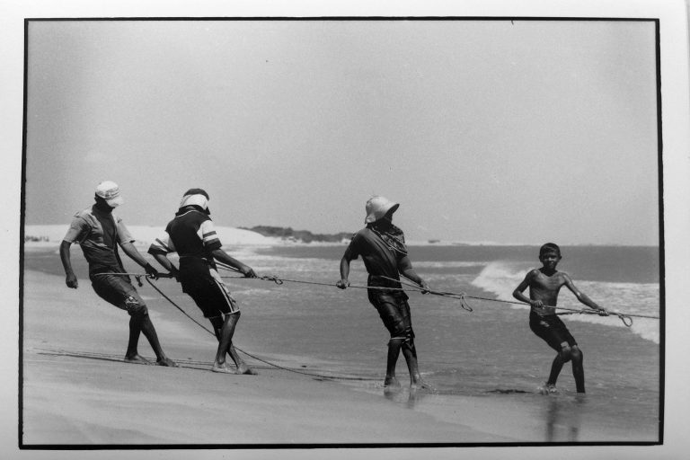 Hoje, a viagem é muito mais rápida e fácil, pelas areias da praia de Preá, em ônibus comuns. O paraíso não é mais o mesmo, devido a uma vertiginosa especulação imobiliária na vila. Tentados por ofertas astronômicas por seus terrenos, pescadores abandonaram suas casas. Os filhos não querem mais seguir a profissão dos homens do mar. Os jovens preferem as atividades ligadas ao turismo, com lucros maiores e mais rápidos. Em duas das seis vezes em que estive lá, levei meu equipamento analógico e filmes em P&B. Agora, revendo o trabalho, me dou conta de que fiz fotos dos derradeiros momentos da atividade pesqueira na aldeia. Daí esse ensaio, em homenagem a eles, os pescadores de Jeri, símbolos de mais um trabalho de subsistência ameaçado de extinção, nesses tempos modernos e globalizados.