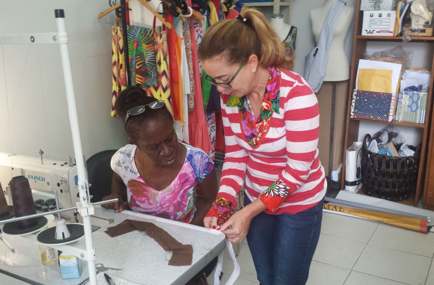 Agora Mariane atua como modelista, orientando as bolsistas na confecção das peças que servirão de modelo para uma produção maior. O trabalho precisa ser feito com cuidado. Uma falha na peça modelo significa redução no lucro da venda ou diminuição no pequeno estoque de tecido que a ONG recebe de doação. A falta de experiência das voluntárias, por isso, se torna um problema.