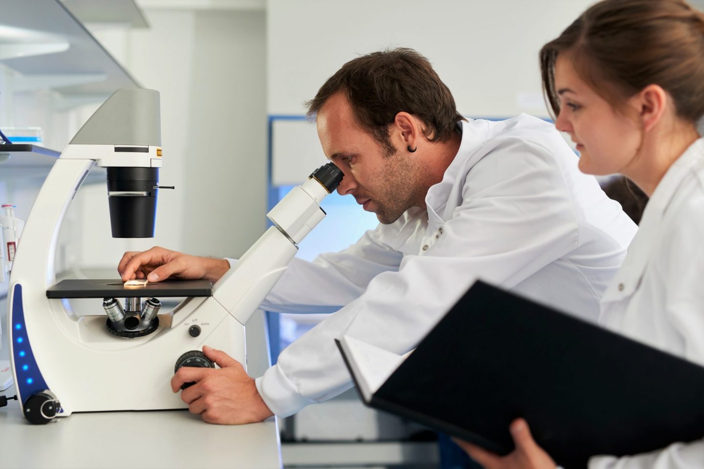 Pesquisadores no laboratório: mulheres sofrem com machismo na carreira científica. Foto: Matt Lincoln / Cultura Creative/AFP