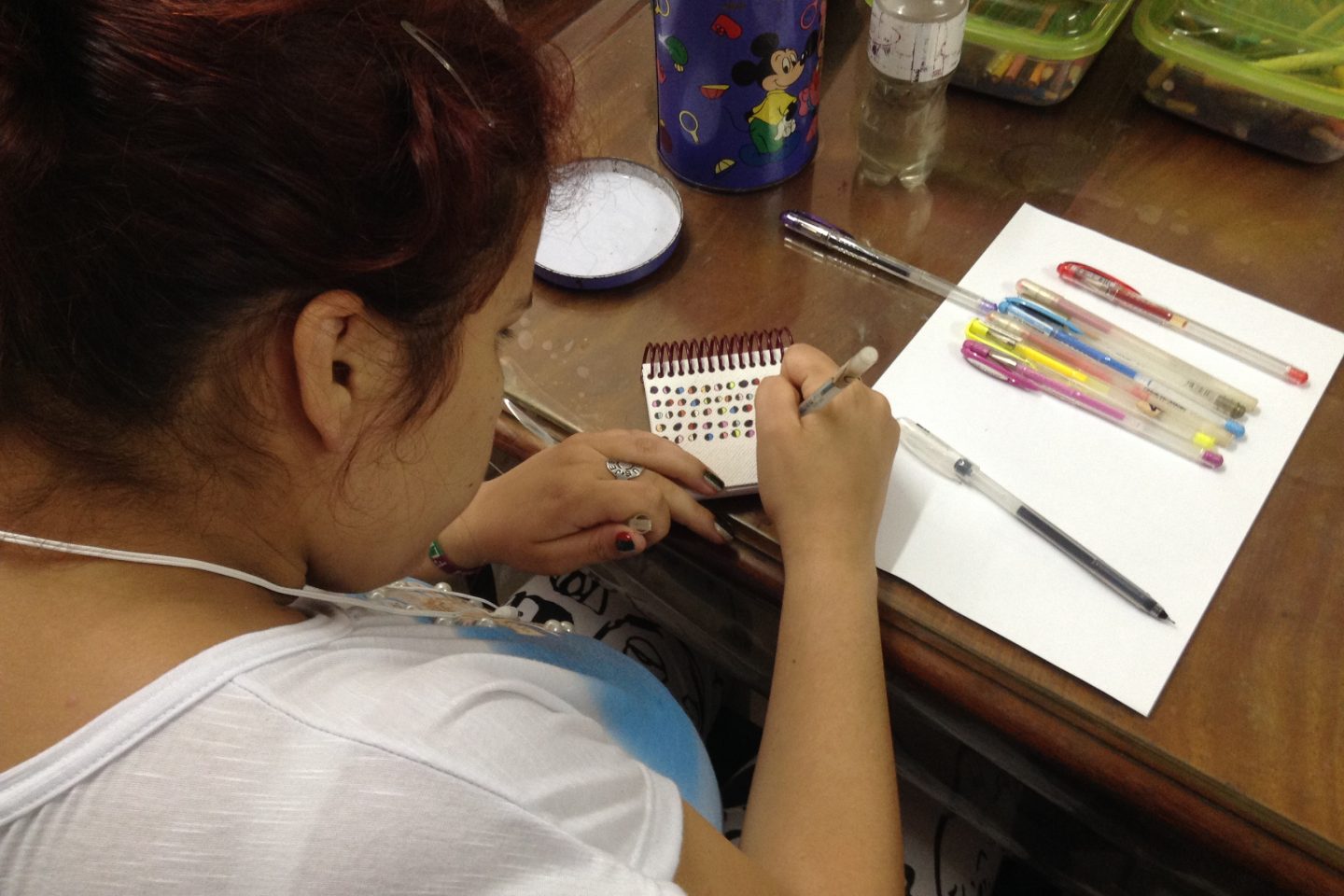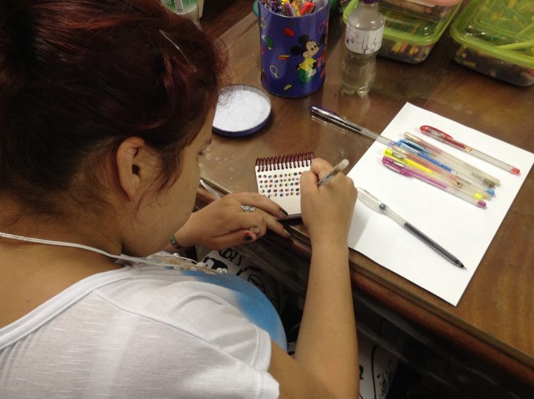 Mas o projeto sempre se sustentou com as doações de excedentes de papéis de empresas e escolas, além do lucro com as vendas. “Se a gente não gastasse cinco, seis mil reais por ano em aulas, a gente não estava no vermelho. Mas essas aulas são superimportantes. Temos gastos de aniversários dos pacientes, táxis para as vendas etc”, diz Esther.