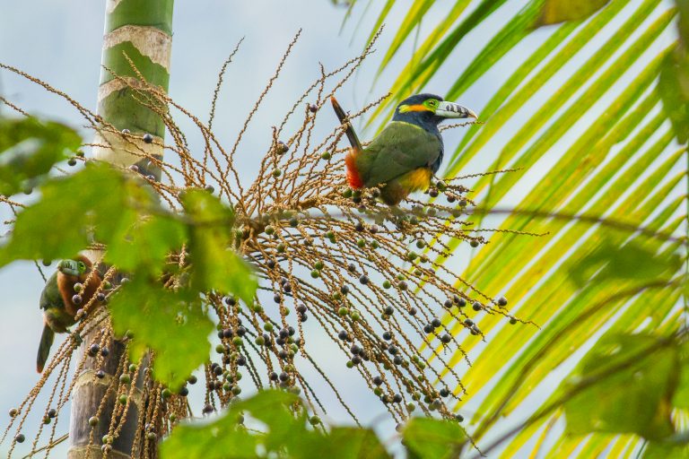 “Sem o Palmito-Juçara, a Mata Atlântica empobrece. Ela alimenta várias aves que fazem a dispersão de sementes na floresta. Também se beneficiam das suas sementes ou frutos outros animais, como as cutias, antas, catetos e muitos outros. De acordo com a Fundação Florestal, a sua semente e o fruto servem de alimento para mais de 68 espécies, entre aves e mamíferos. Tucanos, jacutingas, jacus, sabiás e arapongas são os principais responsáveis pela dispersão das sementes, enquanto cutias, antas, catetos, esquilos e muitos outros animais ainda se beneficiam das suas sementes e frutos”.