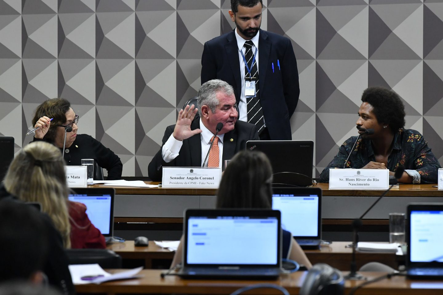 Mas é preciso ainda um quarto fator para que o esquema aberração + manchete + trollagem funcione. Esse elemento é a fraqueza institucional para lidar com esse tipo de violência. Primeiro, porque é difícil caracterizá-la, rastreá-la. Esse é exatamente um dos grandes méritos da reportagem de Patrícia: identificar o esquema de ataques em massa, dos quais agora ela também está sendo alvo. Além disso, o recurso à institucionalidade é fraco diante da força dos robôs e da fácil adesão popular ao tipo de peças que são distribuídas, muitas carregadas de uma suposta ambiguidade entre humor e violência. O primeiro a se manifestar contra os insultos a Patrícia foi o presidente da Câmara, Rodrigo Maia, que publicou no Twitter uma nota de repúdio à atitude Hans River: “Dar falso testemunho numa comissão do Congresso é crime. Atacar a imprensa com acusações falsas de caráter sexual é baixaria com características de difamação. Falso testemunho, difamação e sexismo têm de ser punidos no rigor da lei.”