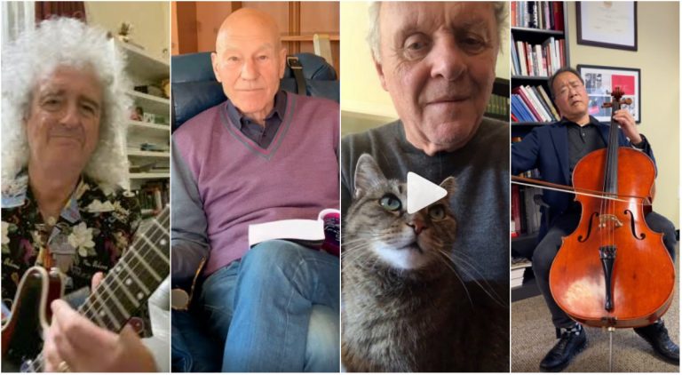 Em quarentena, grandes artistas como o guitarrista Brian May e o ator Patrick Stewart inovam nas redes sociais com aulas de músicas e leituras de sonetos