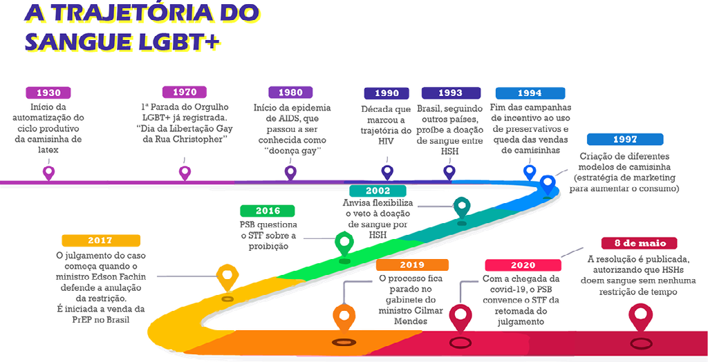 O sangue de homens que fazem sexo com outros homens (HSH) em um período de 12 meses era considerado inapto para a doação até 8 de maio de 2020. Tal restrição constava em trechos da Portaria n° 158/16 do Ministério da Saúde e da Resolução RDC nº 34/14 da Anvisa (Agência Nacional de Vigilância Sanitária). Essa decisão é fruto de uma longa trajetória que teve início com a discussão da antigamente denominada “doença gay”, a AIDS.