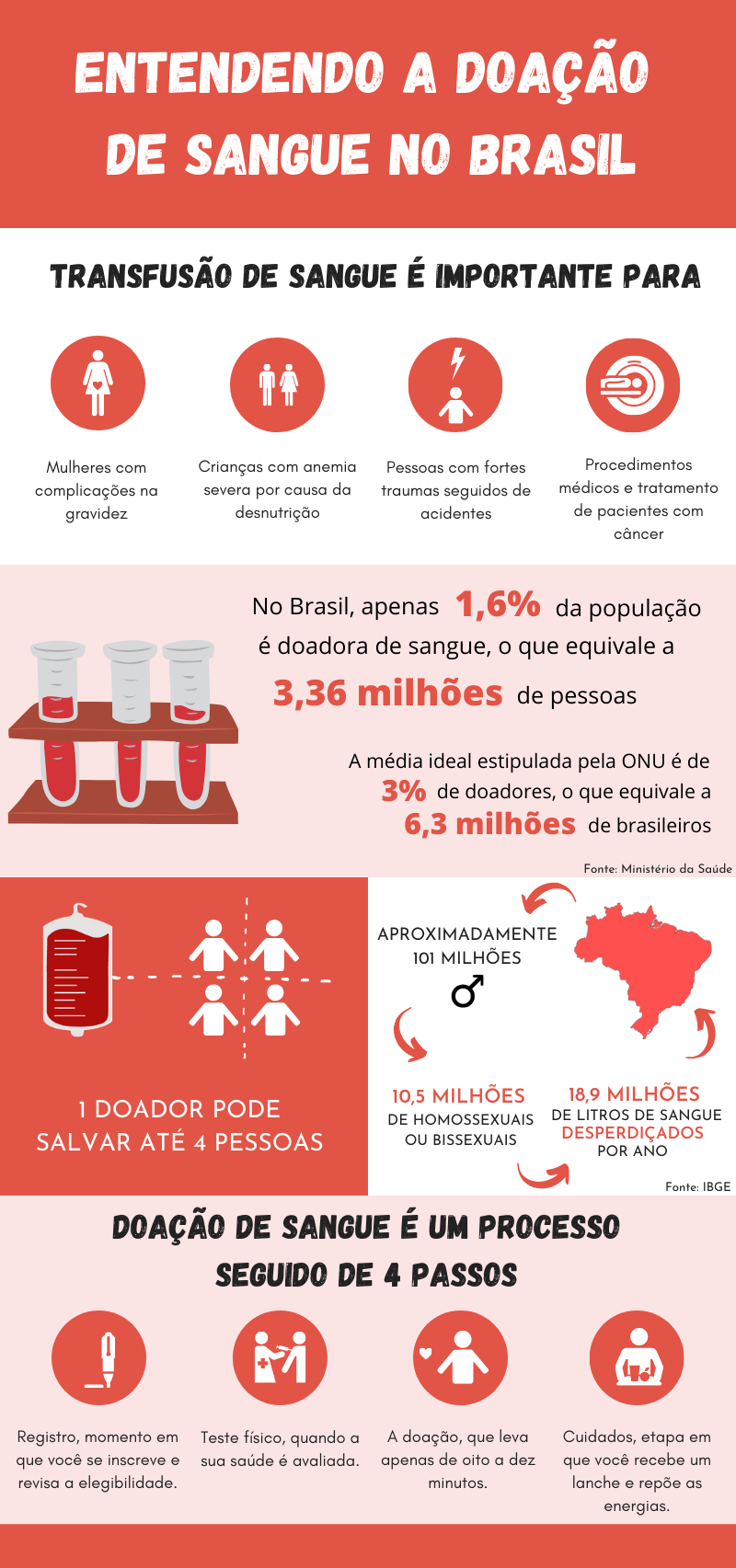 O ano de 2020 chegou e com ele a pandemia do novo coronavírus. Já foram registrados mais de 2 milhões de casos e cerca de 80 mil mortes no país até a última atualização desta matéria. O governo e o Ministério da Saúde tentam controlar a curva de avanço da doença, tomando medidas como o isolamento social, porém o sistema de saúde tem enfrentado sérios problemas tentando atender toda a população afetada. A política da quarentena cerceou ainda mais os estoques de sangue brasileiros. Com isso surge a dúvida: como incentivar e aumentar as doações de sangue pelo país?