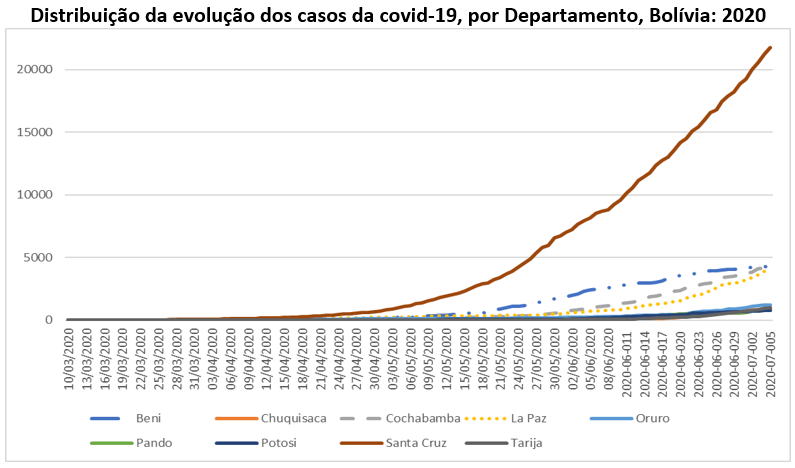 Portanto, a Bolívia enfrenta atualmente uma crise na saúde, na economia e na política e tem dificuldades para controlar o avanço da pandemia. A experiência dos países que conseguiram controlar a difusão do Sars-CoV-2, como Uruguai, Paraguai e Costa Rica, mostra que a união entre o Poder Público e a sociedade civil é essencial. Desta forma, os conflitos sociais e a instabilidade política são desvantagens do povo boliviano neste momento. No dia 03 de maio (data inicial das eleições) o número diário de pessoas infectadas pelo novo coronavírus estava abaixo de 100 casos em 24 horas e no início de julho passou para mais de 1.000 casos diários. O número de mortes que estava abaixo de 5 óbitos diários, agora está acima de 50 óbitos em 24 horas. Portanto, as cifras diárias da covid-19 decuplicaram no curto espaço de 2 meses. Neste ritmo, não será fácil realizar as eleições presidenciais em setembro de 2020.